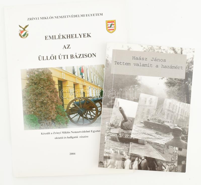 2 db militária témájú könyv: Nagy László, Vörös Béla: Emlékhelyek az Üllői úti bázison. Budapest, 2004, Zrínyi Miklós Nemzetvédelmi Egyetem. Megjelent 500 példányban. 90 p.. Kiadói papírkötés, jó állapotban. + Haász János: Tettem valamit a hazámért. Budapest, 2006, Zrínyi Miklós Nemzetvédelmi Egyetem. Megjelent 300 példányban. 128 p.. Kiadói papírkötés, jó állapotban.