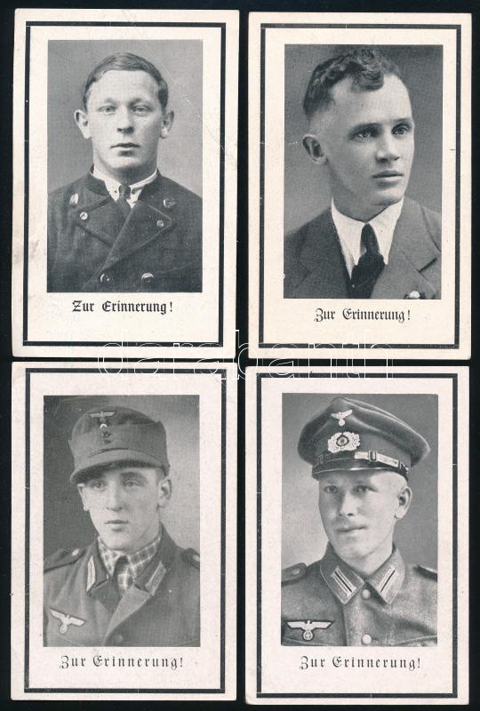 Leírás: II. világháborús német (Wehrmacht) katonai halotti értesítő kártyák, 4 db, 11x7 cm / WWII German military death cards (Sterbebilder), 4 pcs