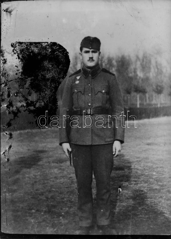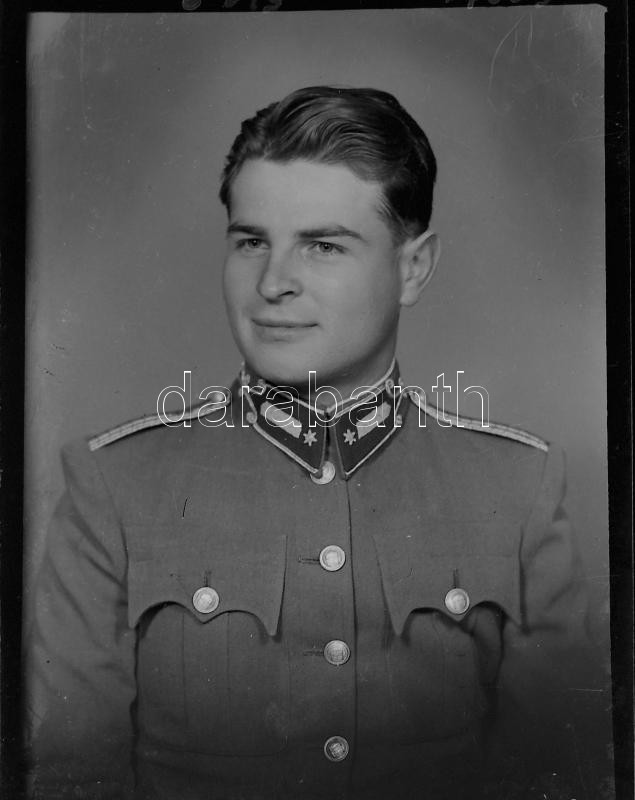 Katonai portréfelvételek tétele, 33 db vintage üveglemez NEGATÍV és síkfilm, a felvételek különböző időpontokban készültek (cca 1930 és cca 1955 között), több hagyatékból származnak, a beadó hozzá nem értése okán előfordulhatnak más egyenruhások is a portrék között, 9x6 cm és 6x6 cm között