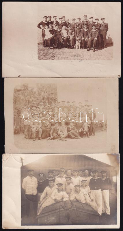 Leírás: Német tengerész csoportképek, 3 db fotó, 9×13 cm