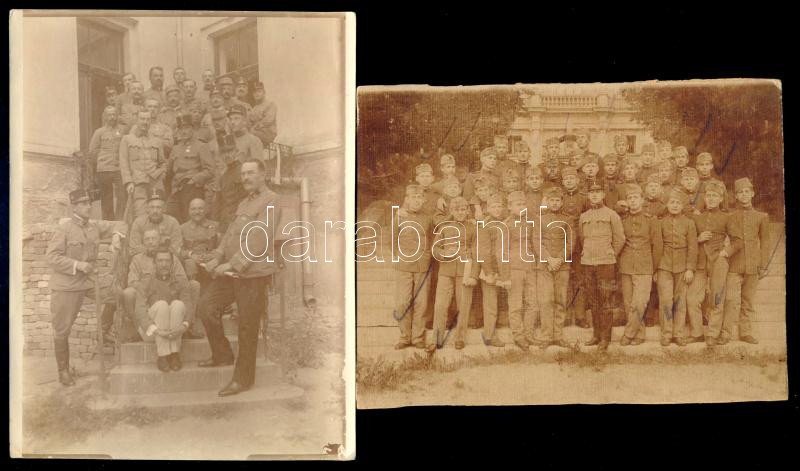 cca 1915 Katonai csoportkép, 2 db fotó, 8,5×11 és 11,5×9 cm https://www.darabanth.com/hu/444-Gyorsarveres/444.0/Mutargy-papirregiseg-egyeb/Militaria~1500001/cca-1915-Katonai-csoportkep-2-db-foto-8-5C39711-es-11-5C3979-cm~II2933811