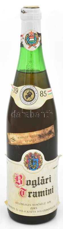 1985 Balatonboglári Tramini, bontatlan palack édes fehérbor, foltos cí... https://www.darabanth.com/hu/444-Gyorsarveres/444.0/Mutargy-papirregiseg-egyeb/Muzealis-borok-italok~500019/1985-Balatonboglari-Tramini-bontatlan-palack-edes-feherbor-foltos-cimkevel-0-75l~II2926063