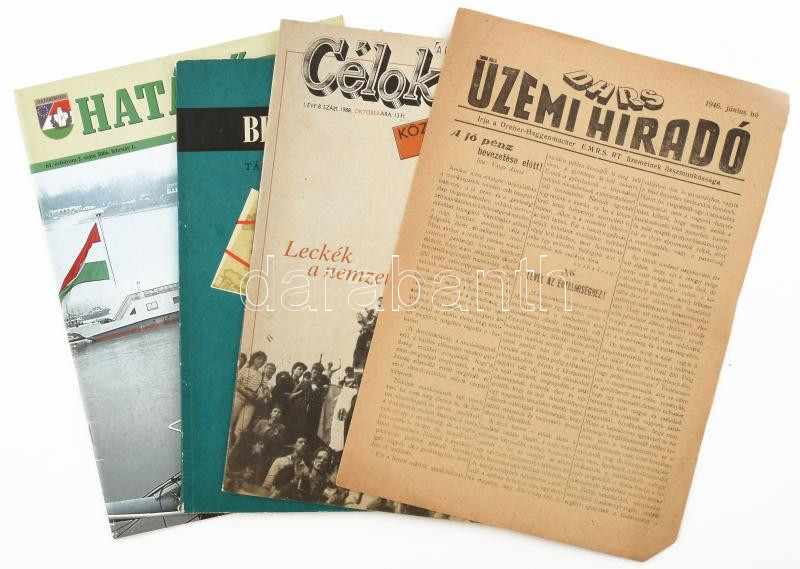 Leírás: 1946-2006 4 db újság/folyóirat: DHRS Üzemi Híradó, Célok, Belügyi Szemle tájékoztatója, Határőr
