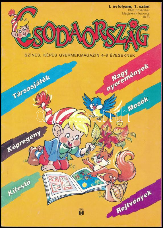 1990 Csodaország képes gyermekmagazin, I. évf. 1. sz. (induló szám), 1... https://www.darabanth.com/hu/444-Gyorsarveres/444.0/Mutargy-papirregiseg-egyeb/Nyomtatvanyok~1500007/1990-Csodaorszag-kepes-gyermekmagazin-I-evf-1-sz-indulo-szam-1990-november-jo-allap~II2911208