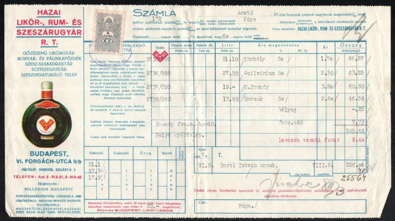 1937 Hazai Likör-, Rum- és Szeszárúgyár Rt. fejléces számla https://www.darabanth.com/hu/444-Gyorsarveres/444.0/Mutargy-papirregiseg-egyeb/Okmanyok~500022/1937-Hazai-Likor-Rum-es-Szeszarugyar-Rt-fejleces-szamla~II2931703