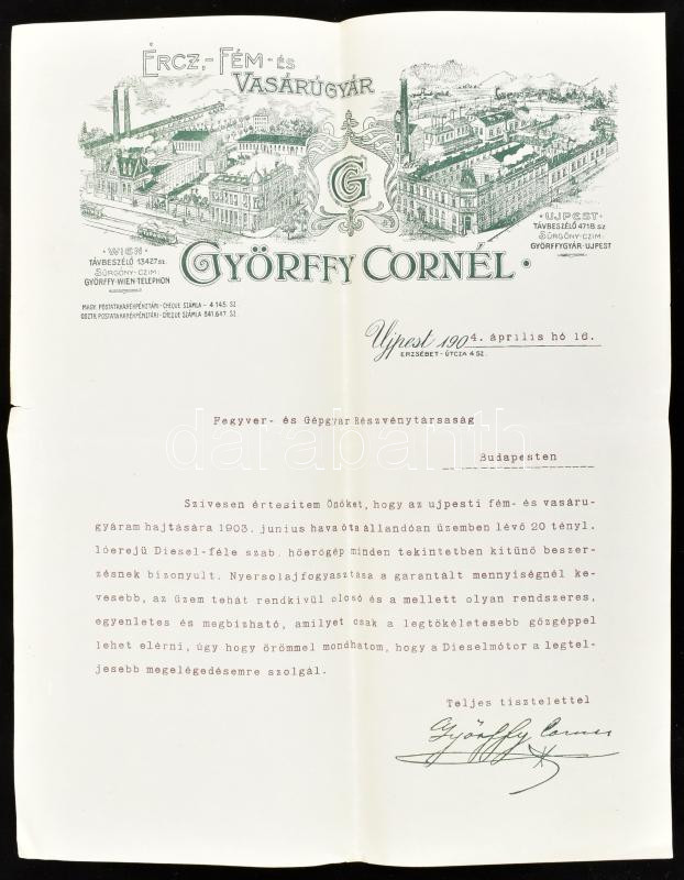 1904 Ujpest Györffy Cornél ércz, fém és vasárúgyár fejléces levélpapír... https://www.darabanth.com/hu/444-Gyorsarveres/444.0/Mutargy-papirregiseg-egyeb/Reklam~500028/1904-Ujpest-Gyorffy-Cornel-ercz-fem-es-vasarugyar-fejleces-levelpapir~II2933977