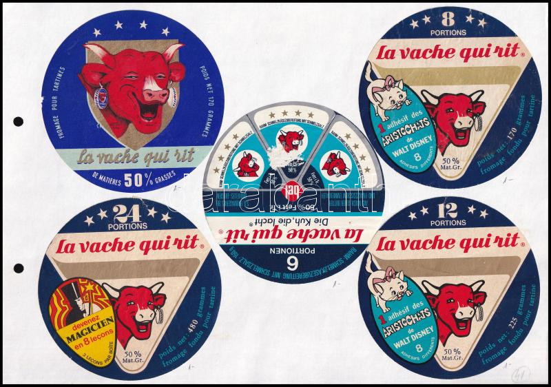 Leírás: 5 db francia sajtcímke, papírlapra ragasztva