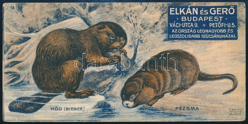 Leírás: Hód, Pézsma. Elkán és Gerő szűcsök szőrmeáru és sapkagyár üzletének számolócédulája. Budapest V. Váci utca 9. és Petőfi utca 5.