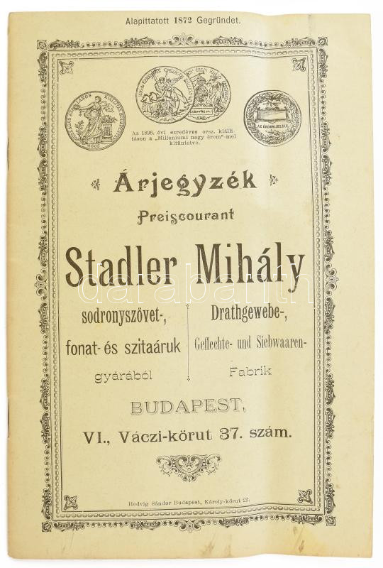 cca 1890 Stadler Mihály sodronyszövet-, fonat- és szitaáruk képes árje... https://www.darabanth.com/hu/444-Gyorsarveres/444.0/Mutargy-papirregiseg-egyeb/Reklam~500028/cca-1890-Stadler-Mihaly-sodronyszovet-fonat-es-szitaaruk-kepes-arjegyzek-48p~II2934170