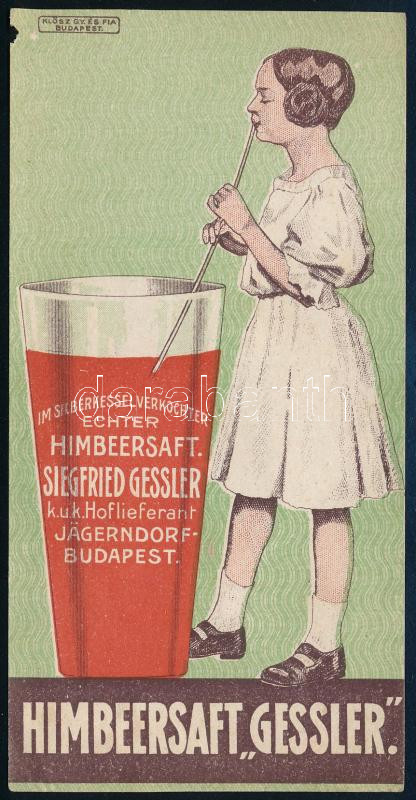 cca 1910-1920 Himbeersaft Gessler számolócédula, minimális sérüléssel https://www.darabanth.com/hu/444-Gyorsarveres/444.0/Mutargy-papirregiseg-egyeb/Reklam~500028/cca-1910-1920-Himbeersaft-Gessler-szamolocedula-minimalis-serulessel~II2927598