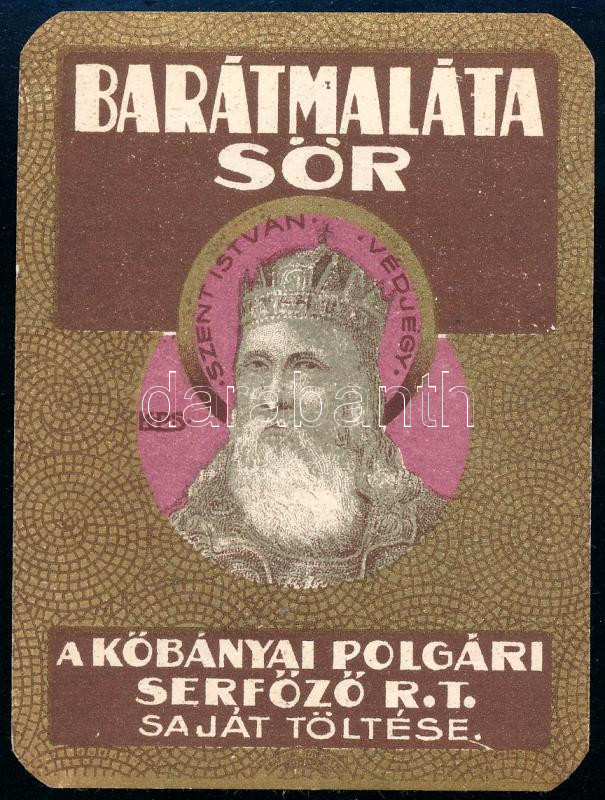 cca 1920-1930 Kőbányai Polgári Serfőző Rt. Barátmaláta sör, dekoratív ... https://www.darabanth.com/hu/444-Gyorsarveres/444.0/Mutargy-papirregiseg-egyeb/Reklam~500028/cca-1920-1930-Kobanyai-Polgari-Serfozo-Rt-Baratmalata-sor-dekorativ-cimke-9-5x7-cm~II2927590