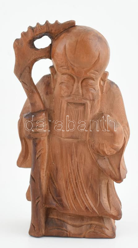Leírás: Kínai bölcs figura, faragott fa, m: 12 cm