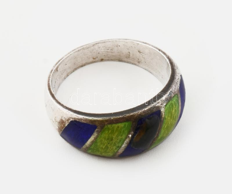 Leírás: Ezüst (Ag) gyűrű tűzzománc díszítéssel, jelzett, bruttó: 4,4 g, m: 51