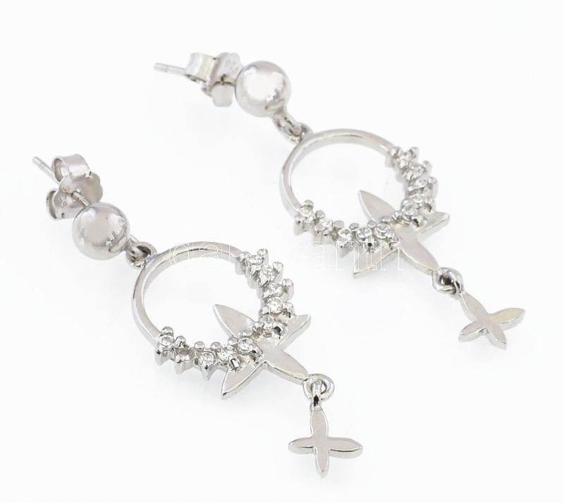 Leírás: Ezüst (Ag) köves fülbevalópár, jelzett, h: 3,5 cm, bruttó: 4 g