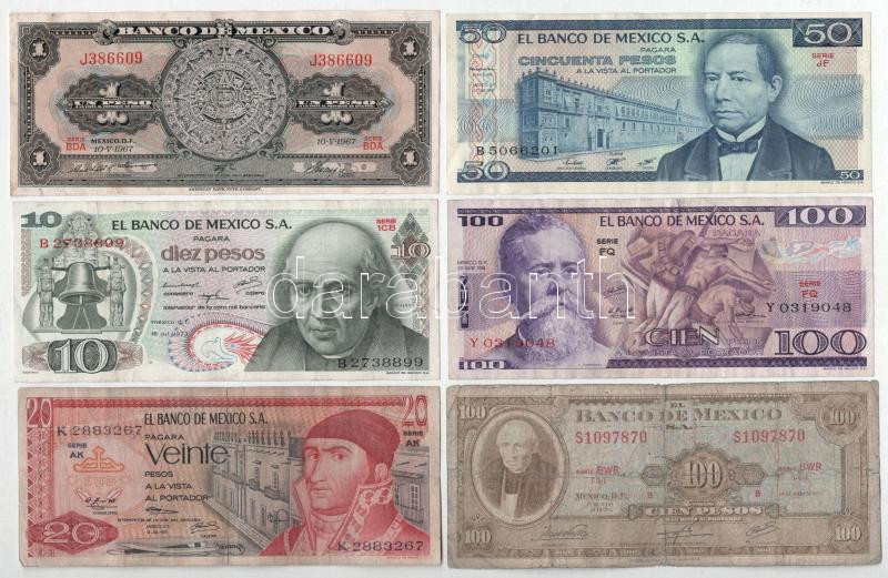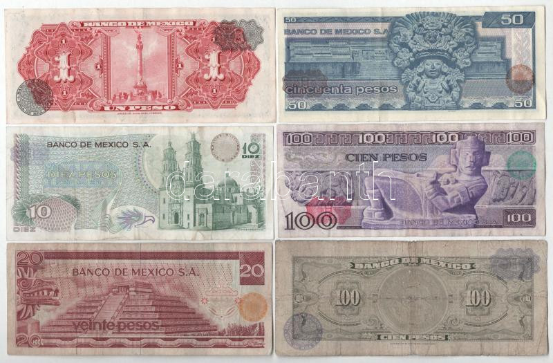 Mexico 1... https://www.darabanth.com/hu/444-Gyorsarveres/444.0/Numizmatika/Kulfoldi-bankjegyek~1000013/Mexiko-1967-1981-1P-100P-6xklf-TXF-VG-kozte-szep-papir-Mexico-1967-1981-1-Peso-100-Pes~II2912185