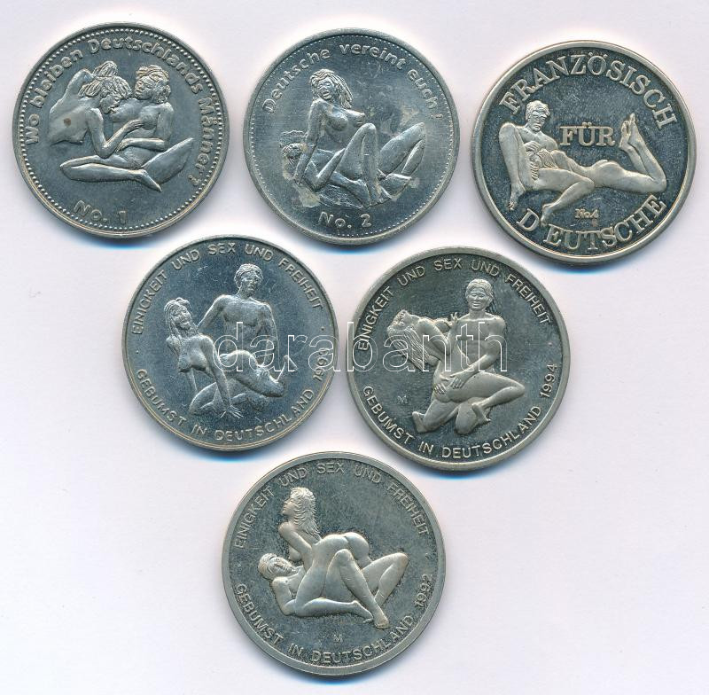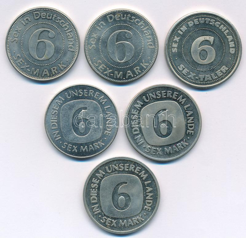 Leírás: Németország ~1993-1995. "6 Sex Mark" fém emlékérem (6xklf) T:1-,2 Germany ~1993-1995. "Sex Mark" medallion (6xdiff) C:AU,XF