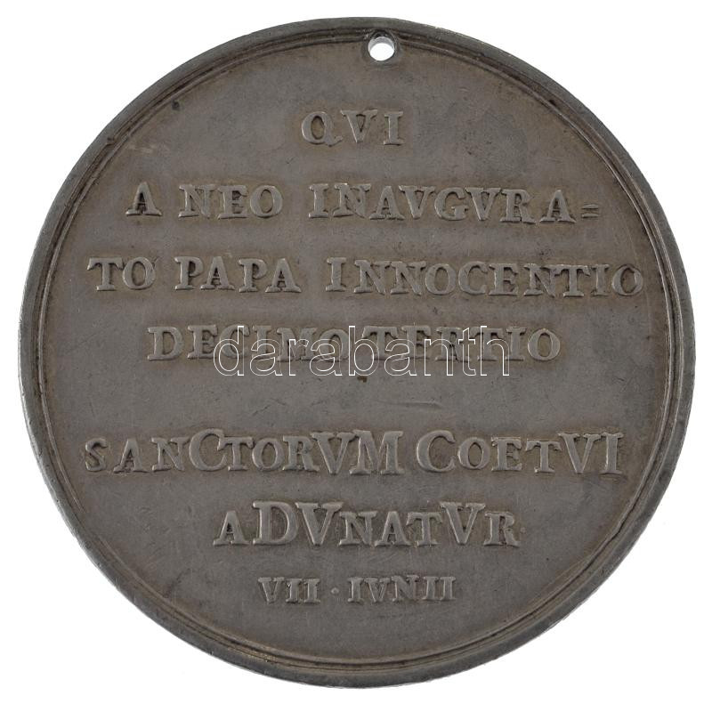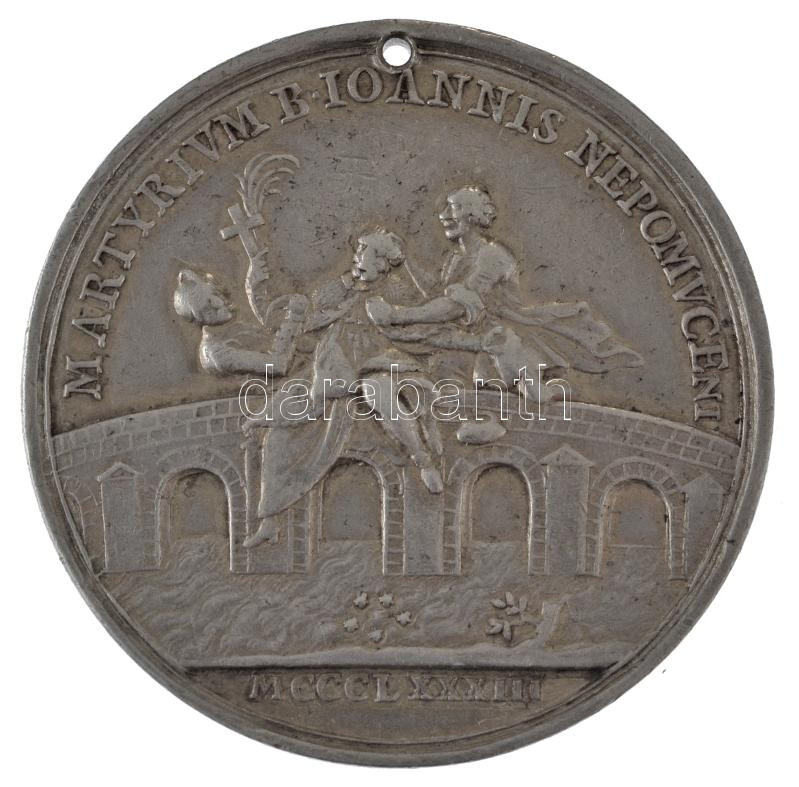 Papal States 1721. "Inauguration of Innocent XIII" Ag commemorative medallion. "MARTYRIVM B IOANNIS NEPOMVCENI - M CCCL XXXIII / QVU A NEO INAVGVRA- - TO PAPA INNOCENTIO - DECIMO TERTIO - SANCTORVM COETVI - ADVNATVR - VII IVNII" (35,04g/42,5mm) C:XF hole