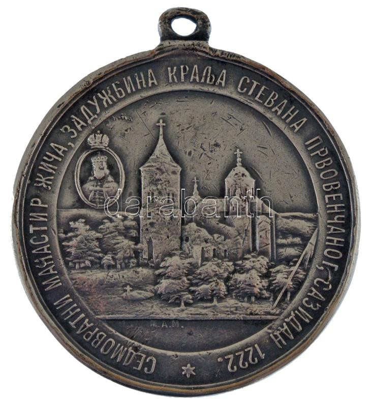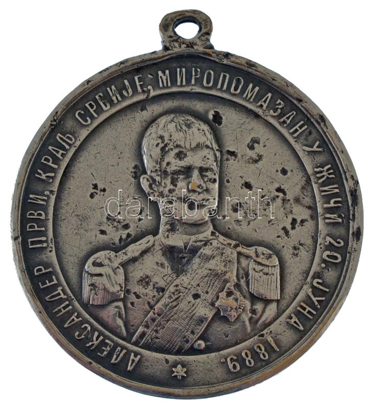 Leírás: Szerbia 1889. "I. Sándor koronázási medál" ezüstözött bronz emlékérem füllel (19,72g/37mm) T:F ü., ph. Serbia 1889. "Alexander I coronation medal" silvered bronze medallion with ear (19,72g37mm) C:F dings, edge errors