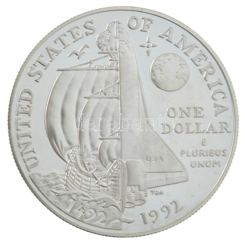 Amerikai Egyesült Államok 1992P 1$ Ag "Amerika felfedezésének 500. évfordulója" kapszulában T:PP USA 1992P 1 Dollar Ag "Columbus quincentenary" in capsule C:PP Krause KM#238