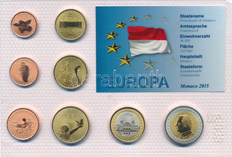 Monaco 2015. 1c-2X próbaveret érmeösszeállítás eredeti fóliacsomagolás... https://www.darabanth.com/hu/444-Gyorsarveres/444.0/Numizmatika/Kulfoldi-fem-es-ezustpenzek~1000014/Monaco-2015-1c-2X-probaveret-ermeosszeallitas-eredeti-foliacsomagolasban-TUNC-Monaco-2015~II2925398