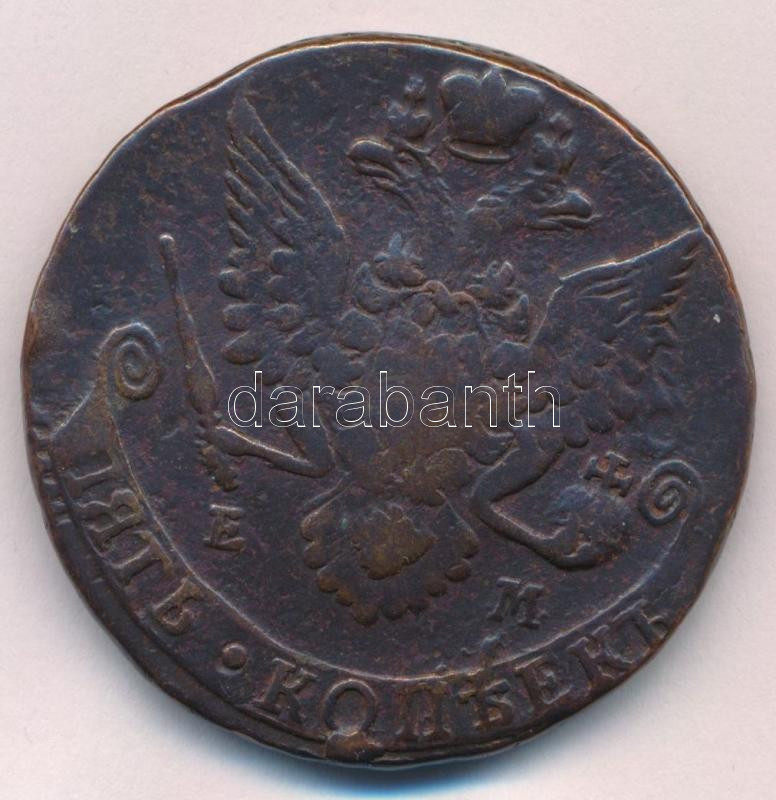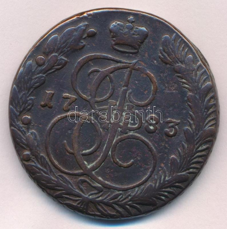 Orosz Birodalom 1783E-M 5k Cu "II. Katalin" (50,34g) T:VF pa... https://www.darabanth.com/hu/444-Gyorsarveres/444.0/Numizmatika/Kulfoldi-fem-es-ezustpenzek~1000014/Orosz-Birodalom-1783E-M-5k-Cu-II-Katalin-50-34g-TVF-patina-Russian-Empire-1783E-M-5-Kopek-Cu-~II2933765