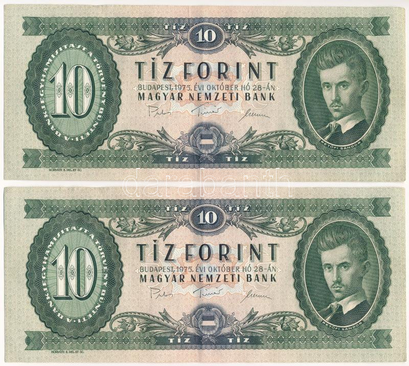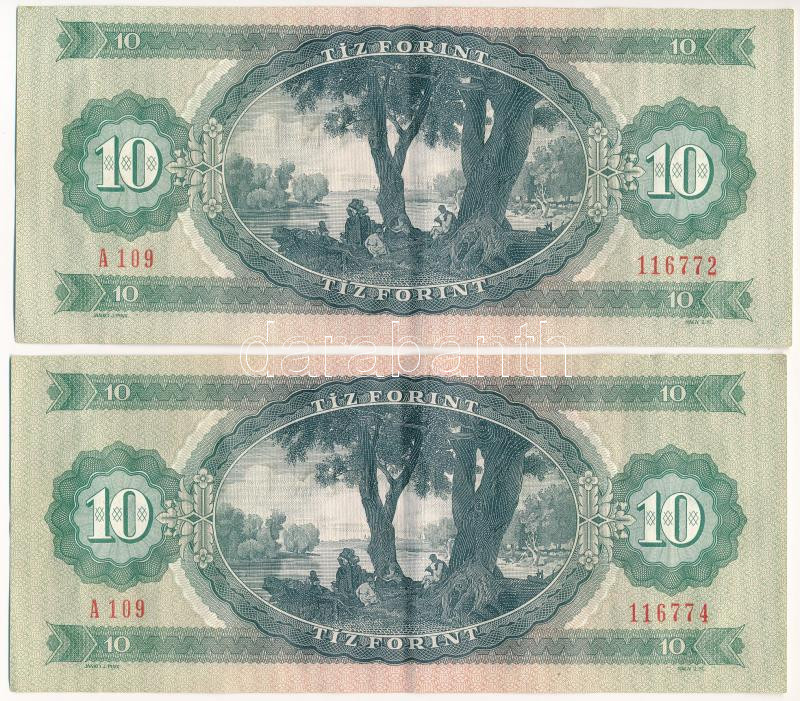 Leírás: 1975. 10Ft (2x) egyugrásos sorszámkövető "A 109 116772 - A 109 116774" T:VF