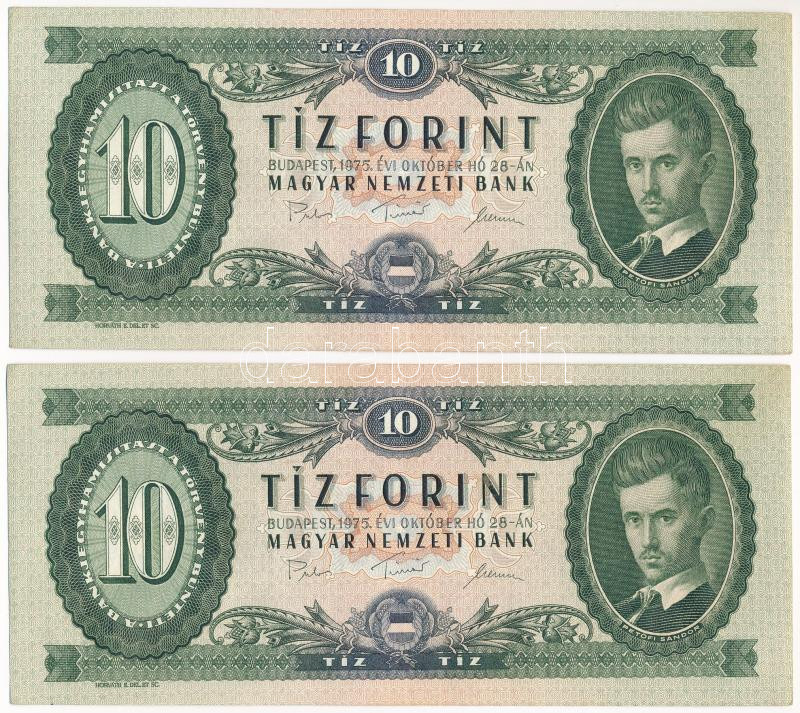 Leírás: 1975. 10Ft (2x) sorszámkövetők "A 120 109618 - A 120 109618" T:F szép papír Adamo F8