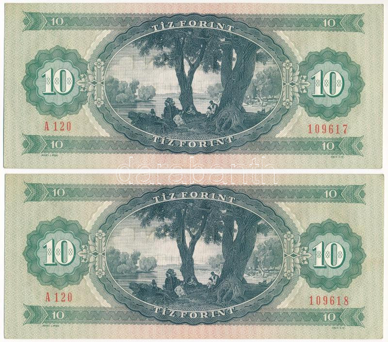 1975. 10Ft (2x) sorszámkövetők "A 120 109618 - A 120 109618"... https://www.darabanth.com/hu/444-Gyorsarveres/444.0/Numizmatika/Magyar-bankjegyek~1000007/1975-10Ft-2x-sorszamkovetok-A-120-109618-A-120-109618-TF-szep-papir-Adamo-F8~II2929879