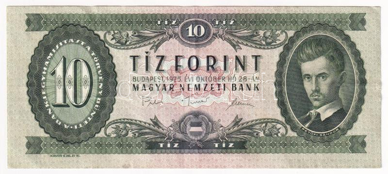Leírás: 1975. 10Ft "A 121 102082" kissé felfelé tolódott nyomattal T:F apró szakadás a szélén, egyébként szép papír