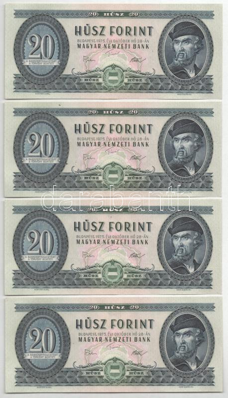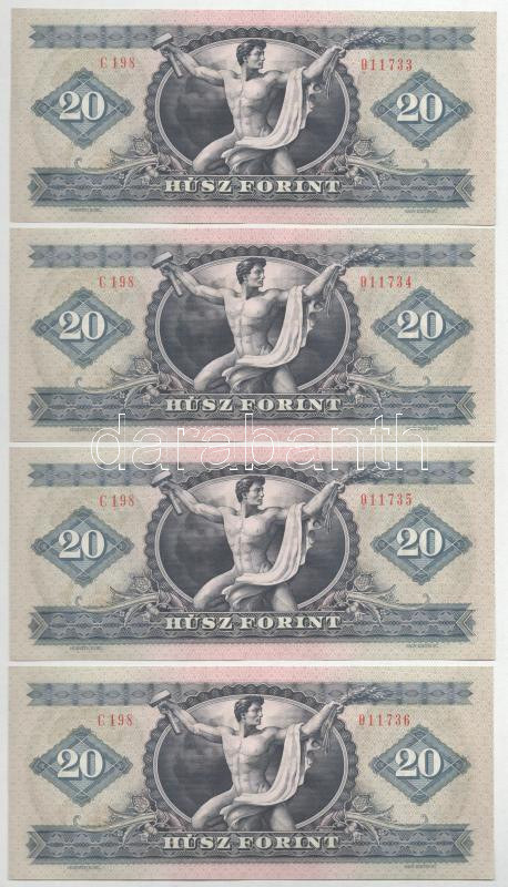 Leírás: 1975. 20Ft (4x) sorszámkövetők "C 198 011733 - C 198 011736" T:UNC,AU Adamo F16