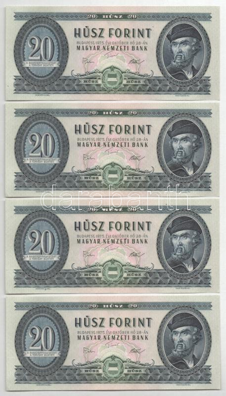 Leírás: 1975. 20Ft (4x) sorszámkövetők "C 198 011737 - C 198 011740" T:UNC,AU Adamo F16