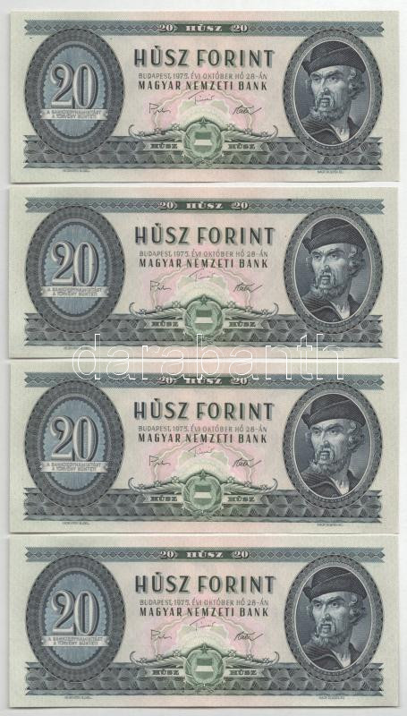 Leírás: 1975. 20Ft (4x) sorszámkövetők "C 198 011741 - C 198 011744" T:UNC,AU Adamo F16