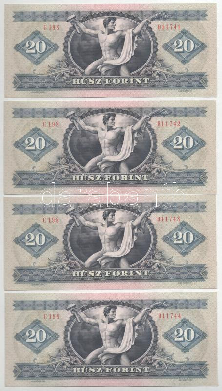 1975. 20Ft (4x) sorszámkövetők "C 198 011741 - C 198 011744"... https://www.darabanth.com/hu/444-Gyorsarveres/444.0/Numizmatika/Magyar-bankjegyek~1000007/1975-20Ft-4x-sorszamkovetok-C-198-011741-C-198-011744-TUNC-AU-Adamo-F16~II2929799