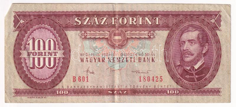 1984. 100Ft "B 601 180425" T:F szép papír https://www.darabanth.com/hu/444-Gyorsarveres/444.0/Numizmatika/Magyar-bankjegyek~1000007/1984-100Ft-B-601-180425-TF-szep-papir~II2911775