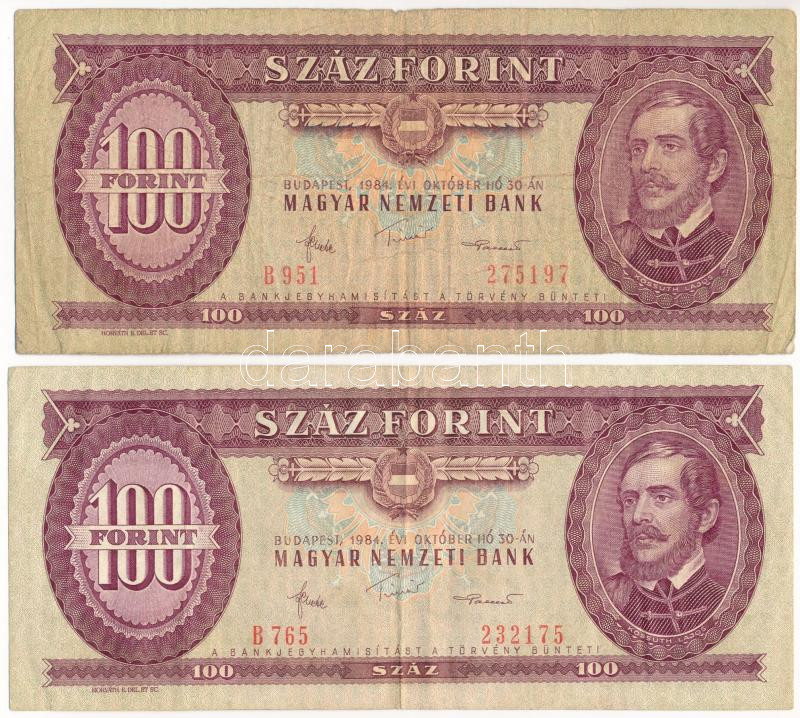 Leírás: 1984. 100Ft fordított hátlapi alapnyomattal (2db) T:F,VG Hungary 1984. 100 Forint with reverse base print on backside (2db) C:F,VG Adamo F35