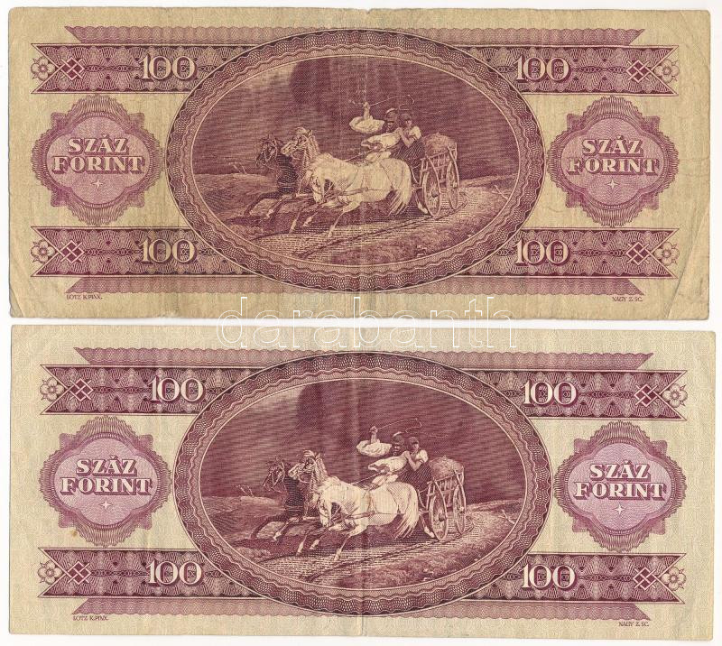 1984. 100Ft fordított hátlapi alapnyomattal (2db) T:F,VG Hungary 1984.... https://www.darabanth.com/hu/444-Gyorsarveres/444.0/Numizmatika/Magyar-bankjegyek~1000007/1984-100Ft-forditott-hatlapi-alapnyomattal-2db-TF-VG-Hungary-1984-100-Forint-with-reverse-bas~II2931447