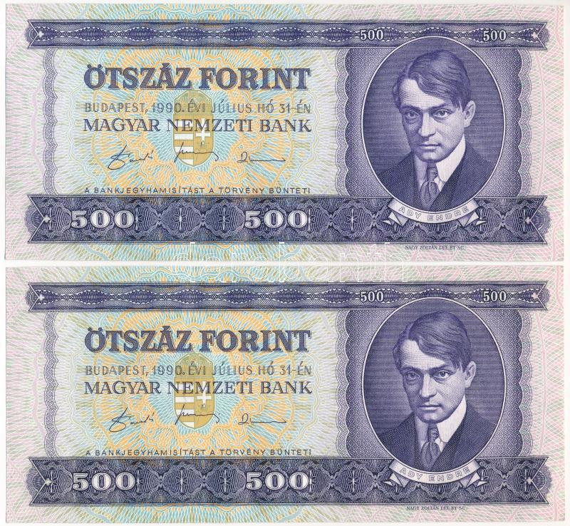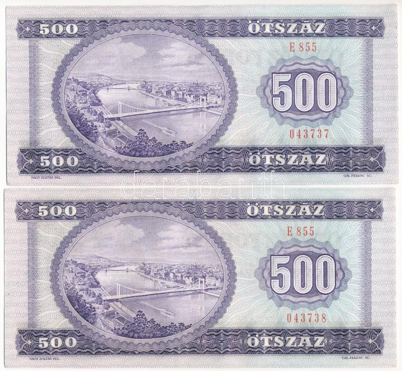 Leírás: 1990. 500Ft (2x) sorszámkövetők "E 855 043737 - E 855 043738" T:UNC kissé hullámos papír