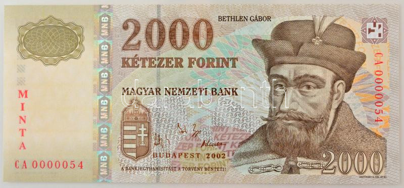 Leírás: 2002. 2000Ft "MINTA" felülnyomással, "CA 0000054" sorszámmal T:UNC