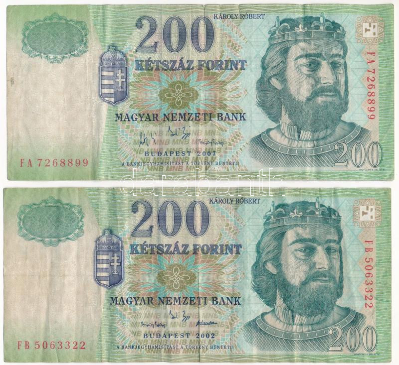 2002. 200ft "FB"+ 2007. 200ft "FA" T:III Adamo F53 https://www.darabanth.com/hu/444-Gyorsarveres/444.0/Numizmatika/Magyar-bankjegyek~1000007/2002-200ft-FBplus-2007-200ft-FA-TIII-Adamo-F53~II2789089