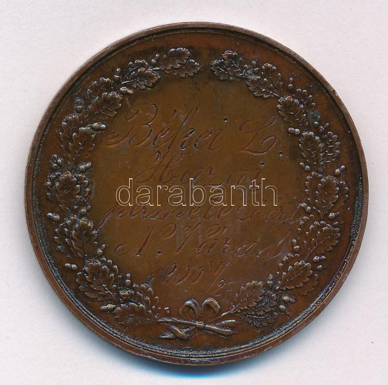 Leírás: 1900. "Bihar megyei Gazdasági Egyesület" bronz emlékérem, hátoldalán "Békei L. hazai permetezőért, N.várad" gravírozással (44mm) T:XF lakkozott
