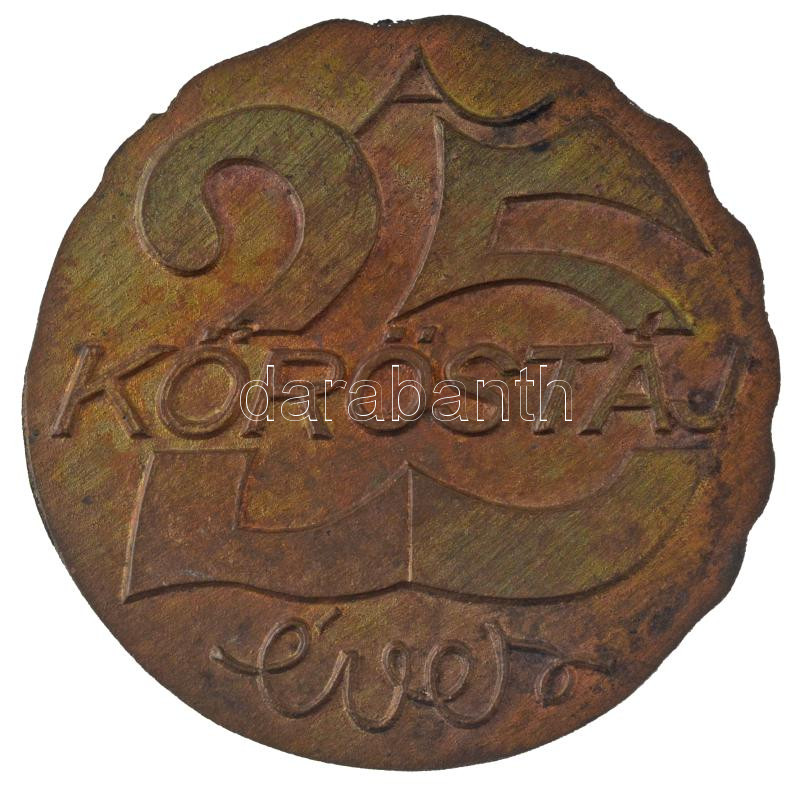 Leírás: 1985. "Sass Ervinnek 1985 / Köröstáj 25 éves" egyoldalas, öntött bronz plakett, cizellálatlan peremmel (~95-96mm) T:XF