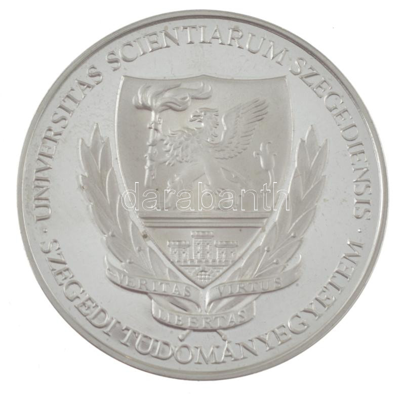 2012. "Szegedi Tudományegyetem - UNIVERSITAS SCIENTIARUM SZEGEDIENSIS" peremen jelzett Ag emlékérem, hátoldalon névre szóló gravírozással, eredeti dísztokban (101,6g/0.925/60mm) T:PP fo.