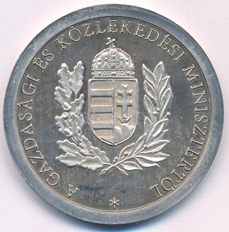 Bozó Gyula (1913-2004) DN "Baross Gábor Díj / A Közgazdasági és Közlekedési Minisztertől" peremen jelzett Ag emlékérem "SZG (Szabó Géza)" gyártói jelzéssel (34,16g/0.925/42,5mm) T:AU (eredeitleg PP) patina