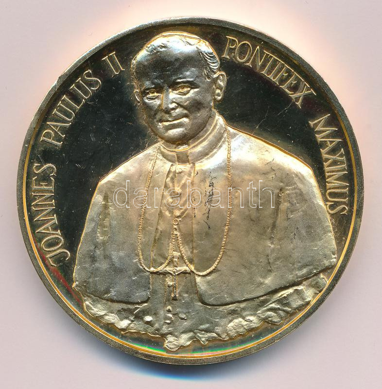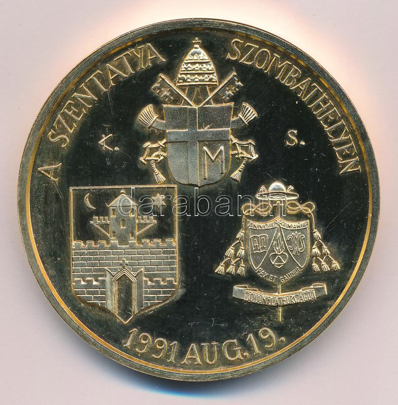 Leírás: Kiss Sándor (1925-1999) 1991. "II. János Pál pápa / A Szentatya Szombathelyen 1991. aug. 19." aranyozott bronz emlékérem (65mm) T:UNC (eredetileg PP)