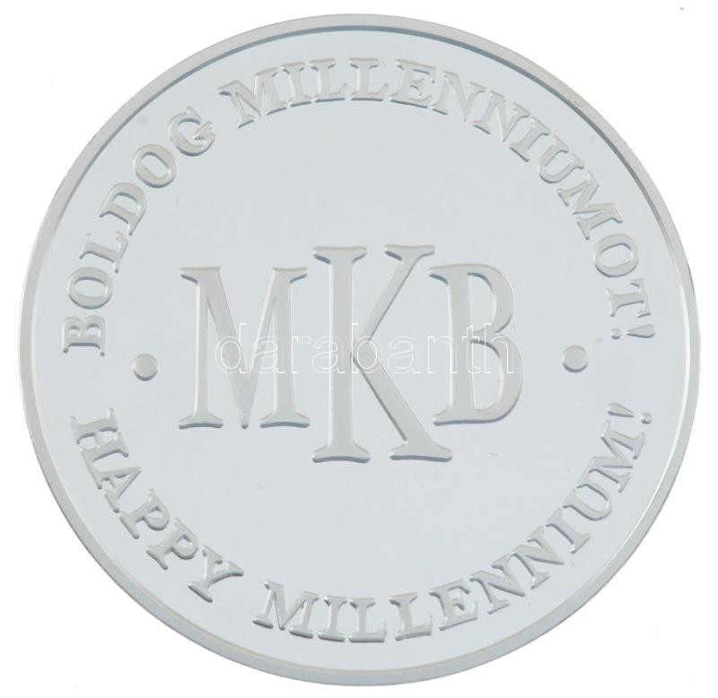 Leírás: Lebó Ferenc (1960-) 2000. "MKB - Boldog Millenniumot / Búcsú a '900-as évektől" jelzett Ag emlékérem dísztokban (31,21g/0.999/42,5mm) T:PP