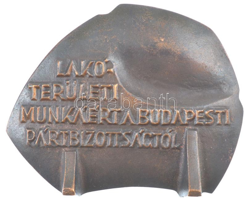 Leírás: Rózsa Péter (1926-2015) ~1980. "Lakóterületi munkáért a Budapesti Pártbizottságtól" kétoldalas öntött bronz plakett (~90x109mm) T:1- patina