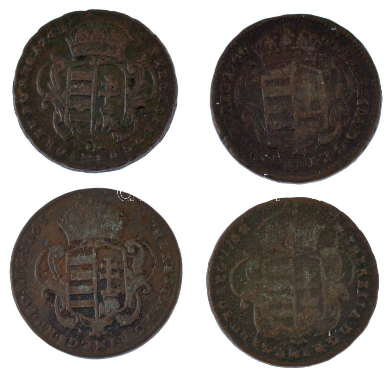Leírás: 1763-1766. 1 Rézdenár "Mária Terézia / Zárt korona" (4db/3xklf évszám) T:VF,F