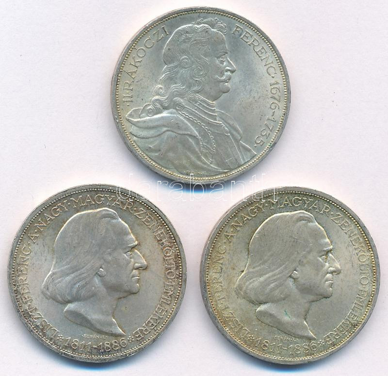 1935. 2P Ag "Rákóczi" + 1936. 2P Ag "Liszt" (2x) T... https://www.darabanth.com/hu/444-Gyorsarveres/444.0/Numizmatika/Magyar-es-magyar-verdejelu-fem-es-ezustpenzek~1000008/1935-2P-Ag-Rakoczi-plus-1936-2P-Ag-Liszt-2x-TAU-XF-patina--Adamo-P72-P73~II2930500