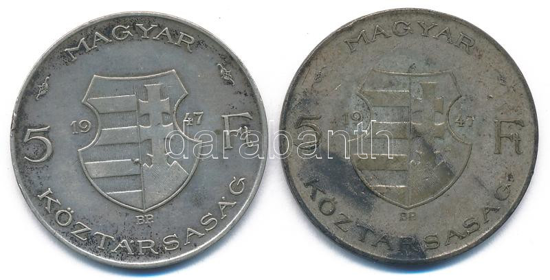 Leírás: 1947. 5Ft Ag "Kossuth" (2x) T:F patina Adamo F8.1