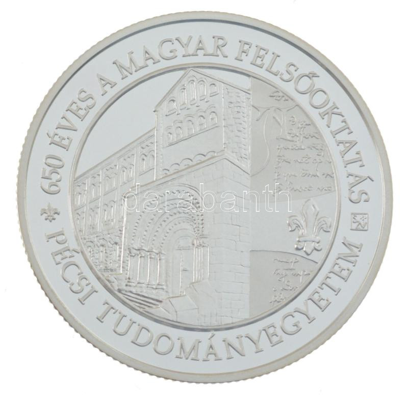 2017. 10.000Ft Ag "650 éves a magyar felsőoktatás - Pécsi Tudomán... https://www.darabanth.com/hu/444-Gyorsarveres/444.0/Numizmatika/Magyar-es-magyar-verdejelu-fem-es-ezustpenzek~1000008/2017-10000Ft-Ag-650-eves-a-magyar-felsooktatas-Pecsi-Tudomanyegyetem-TPP--Adamo-EM343~II2909650